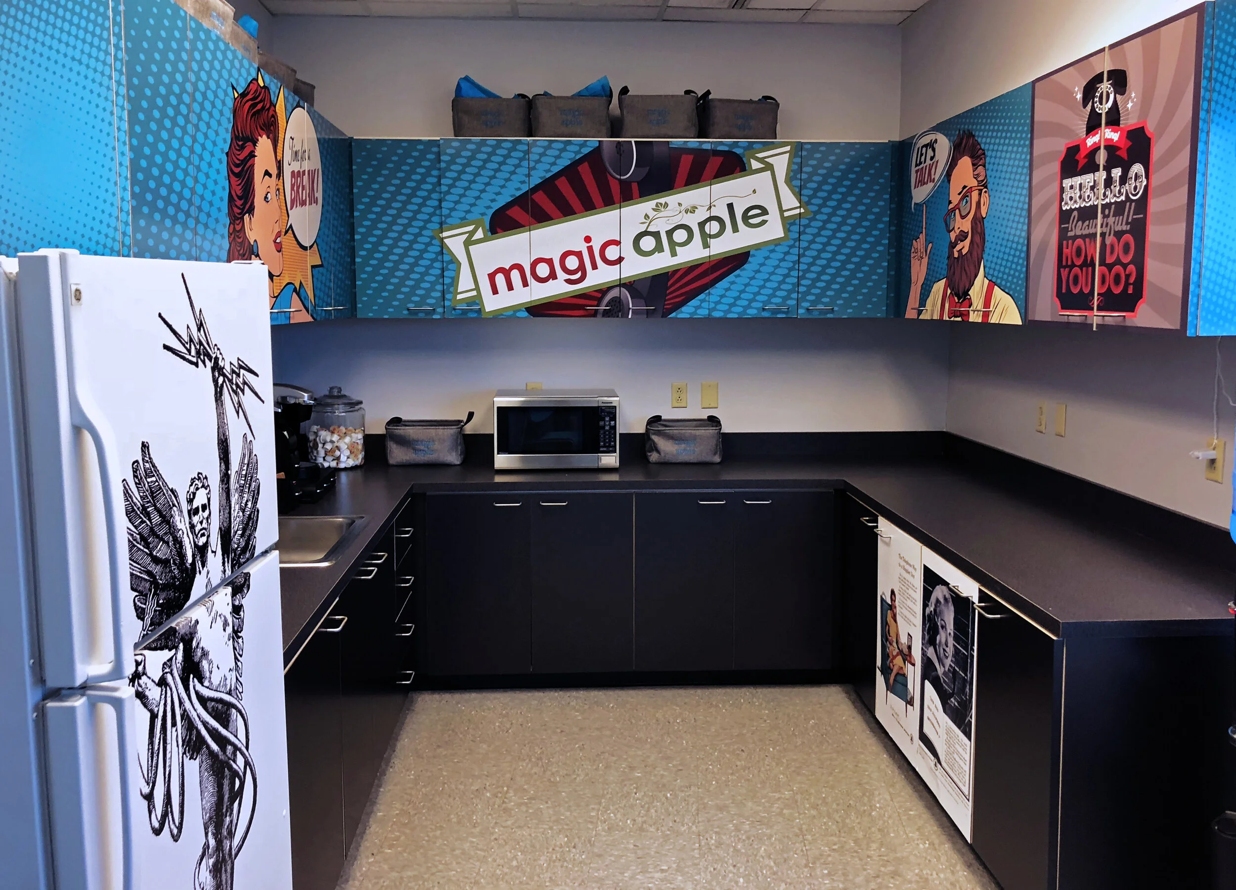 Walls are not the only thing that can be wrapped. A consultation and a site survey is always recommended so that you can get the most out of your space. We get creative with facility graphics, ensuring that your space is uniquely designed and stands out from competitors. We work with companies big and small so we are always on top of the needs of your particular business. A good strategy can take your space to the next level. Follow the trend and see why all of the industry leaders are taking advantage of workplace graphics.